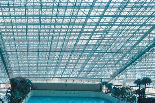 由多根桿件按照一定的網(wǎng)格形式通過節(jié)點(diǎn)連結(jié)而成的空間結(jié)構(gòu)。具有空間受力、重量輕、剛度大、抗震性能好等優(yōu)點(diǎn);可用作體育館、 影劇院、展覽廳、候車廳、體育場看臺雨篷、飛機(jī)庫、雙向大柱 網(wǎng)架結(jié)構(gòu)距車間等建筑的屋蓋。缺點(diǎn)是匯交于節(jié)點(diǎn)上的桿件數(shù)量較多,制作安裝較平面結(jié)構(gòu)復(fù)雜。